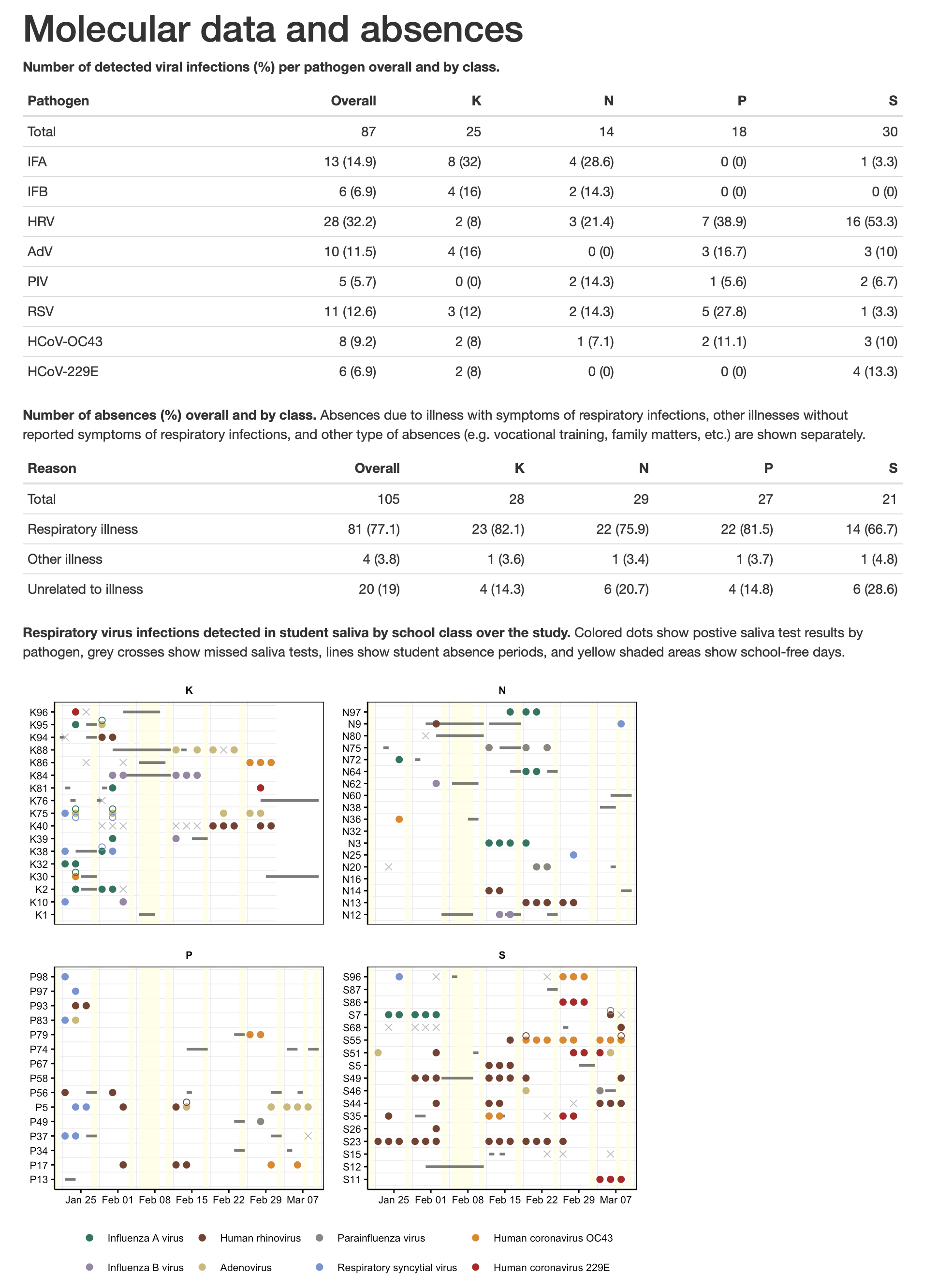 This is incredible. See www.nature.com/articles/… and the associated data osf.io/naut4/fil… It’s a full viral workup for each student in 4 classrooms for 6 weeks. 87 viral infections among 64 students.
